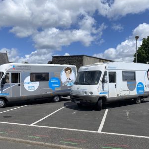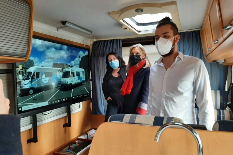 Les Professeurs Trucks sont des salles de cours mobiles équipées d’un écran tactile interactif 55’’, d’une imprimante, de manuels scolaires…